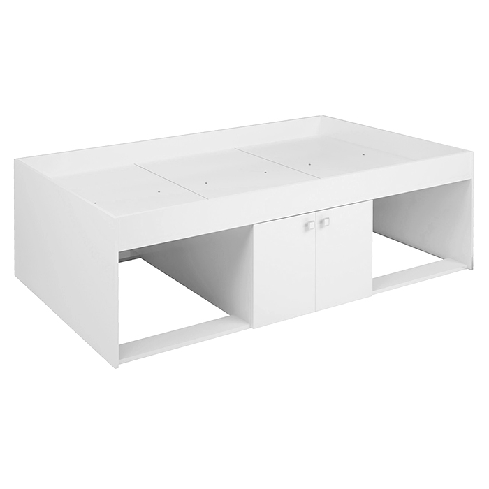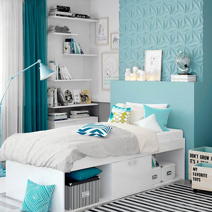 В комплекте гарнитура несколько длинных полок в белом цвете. Мебель выполнена из ЛДСП, что гарантирует прочность и износостойкость. Она гармонично впишется в интерьер и будет элегантной деталью в детской. Качество изделия позволит пользоваться им много лет.