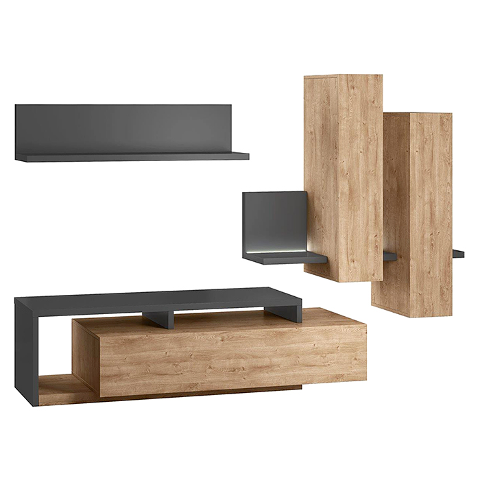 Все поверхности имеют специальное покрытие, которое защищает от механических повреждений. Оно абсолютно безопасно для здоровья и легко поддается мойке без применения чистящих средств. Лаконичная и легкая в уходе стенка станет вашей любимой мебелью в гостиной.